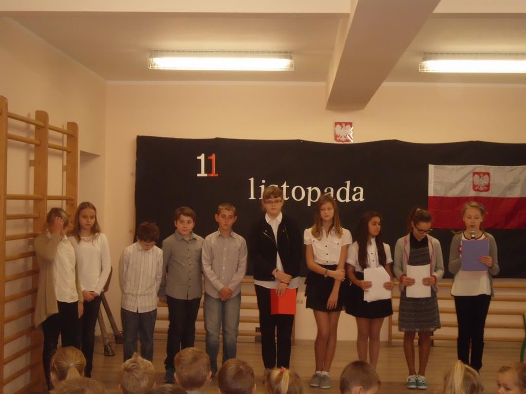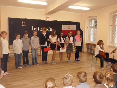 11 listopada to bardzo ważne święto w historii Polski. Dnia 12 XI uczniowie naszej szkoły pod opieką wychowawców, poprzez występ w pięknej akademii, „przybliżyli” nam pamiętną datę - 11 listopada 1918 r. Były pieśni patriotyczne, wiersze, informacje historyczne.