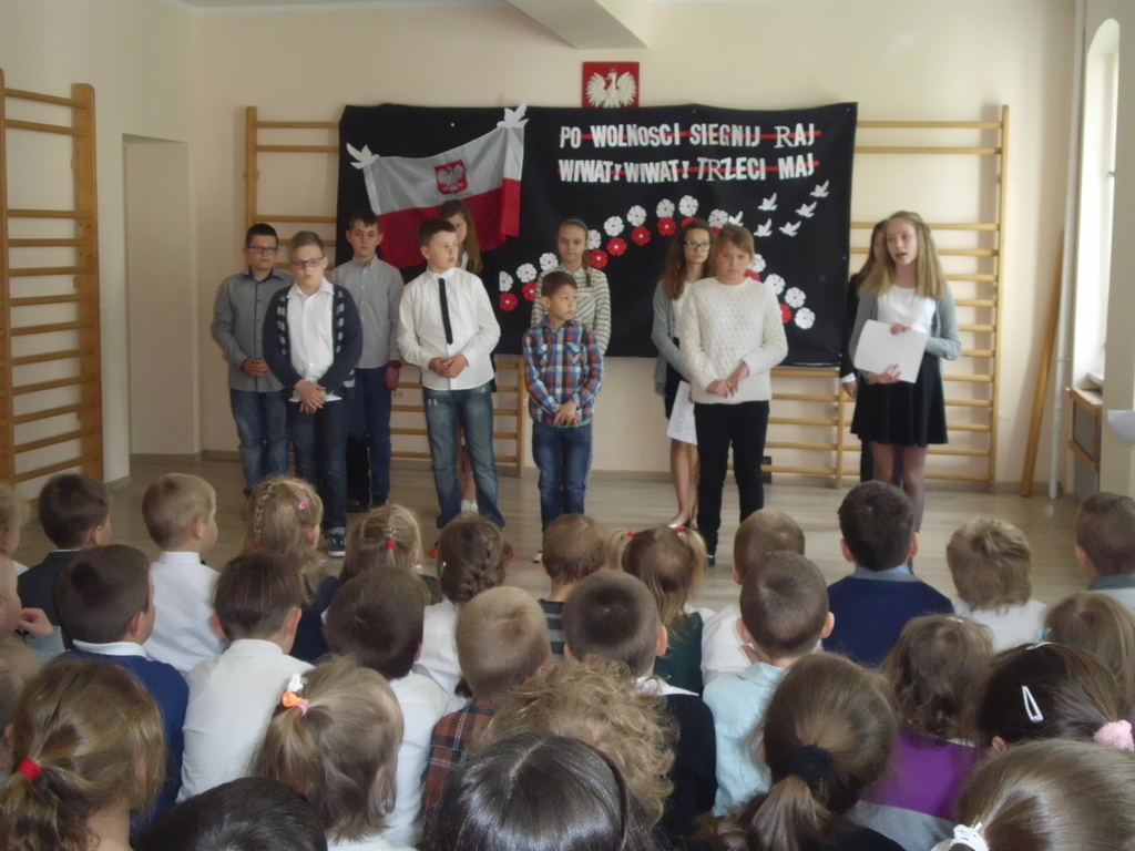 Z okazji 225 rocznicy uchwalenia Konstytucji 3 Maja uczniowie klas 4-6 pod opieką pani dyrektor M. Pocian, przygotowali uroczysty apel. Od kwietnia 1990 roku, święto Konstytucji 3 Maja należy do uroczyście obchodzonych polskich świąt.
