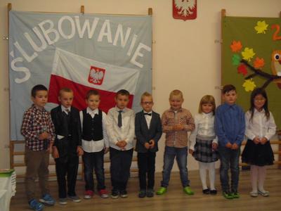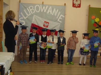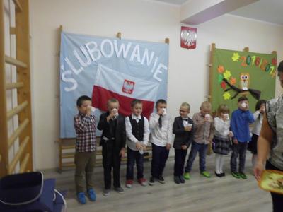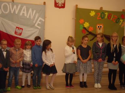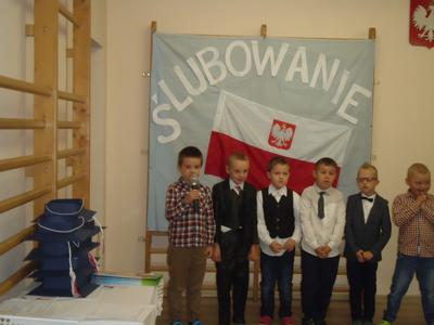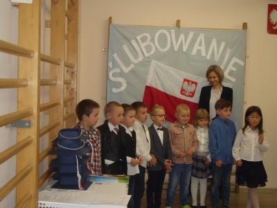 W czwartek 13 października odbyło sie uroczyste Ślubowanie klasy 1. W uroczystości udział wzięła cała społeczność szkolna, rodzice, zaproszeni goście. Pierwszoklasiści złożyli uroczystą przysięgę i przez p. Dyrektor zostali pasowani na uczniów. Po części oficjalnej wszyscy spotkali się na słodkim poczęstunku przygotowanym przez rodziców.