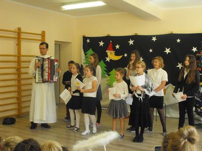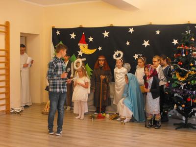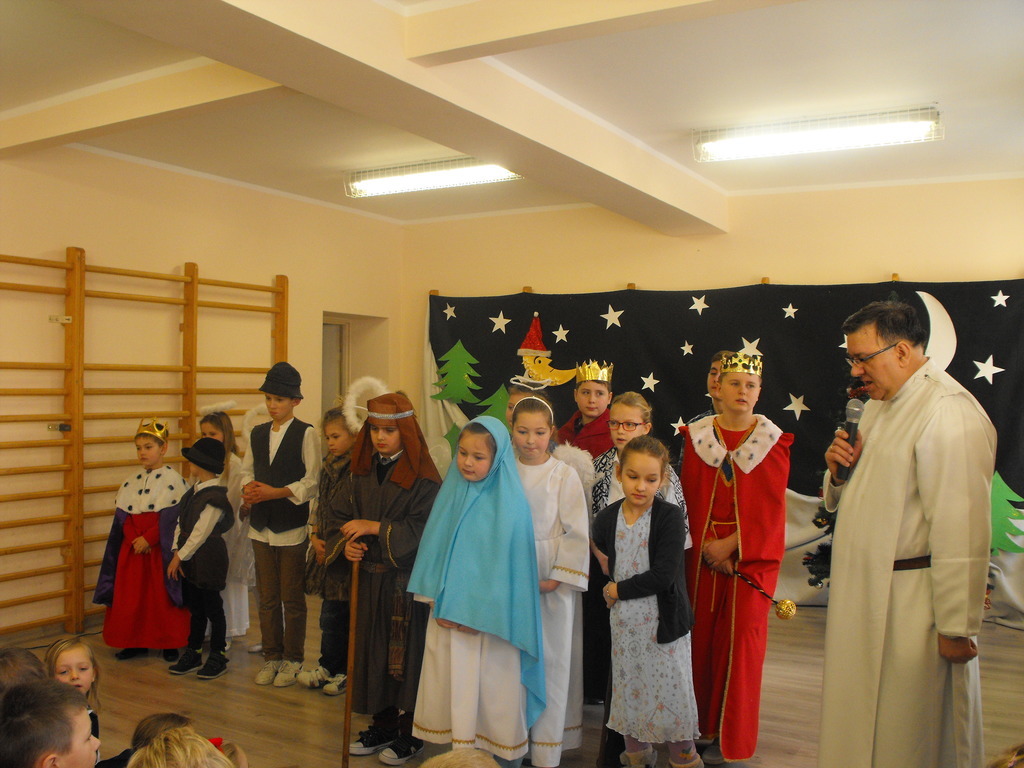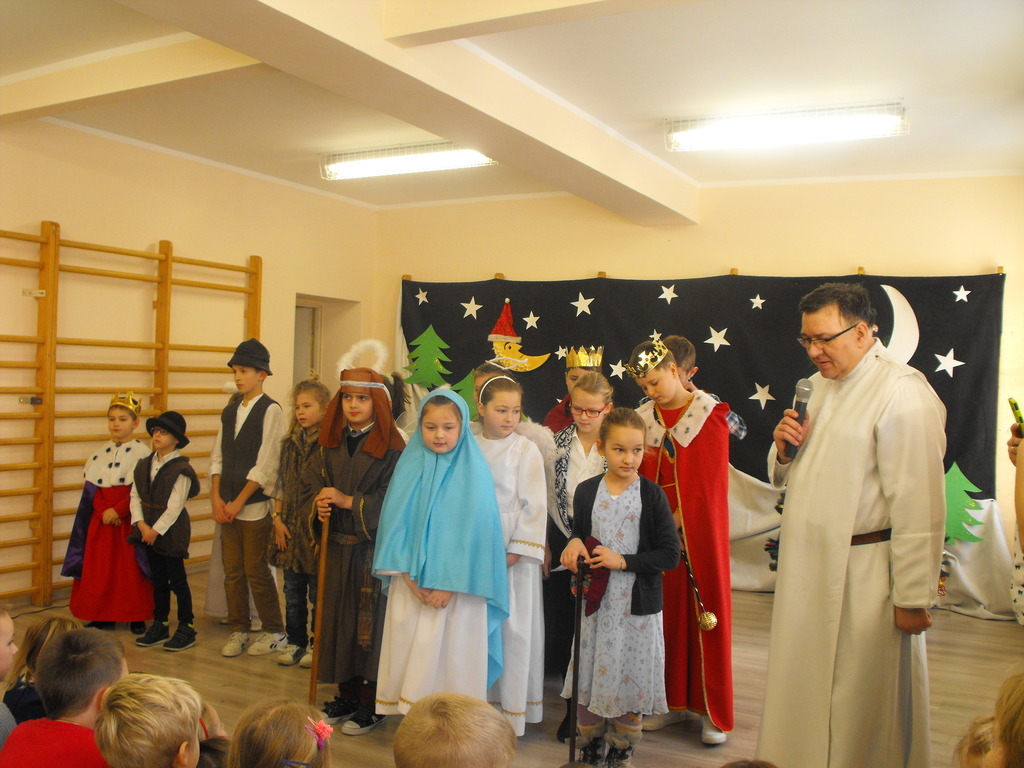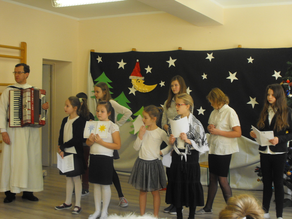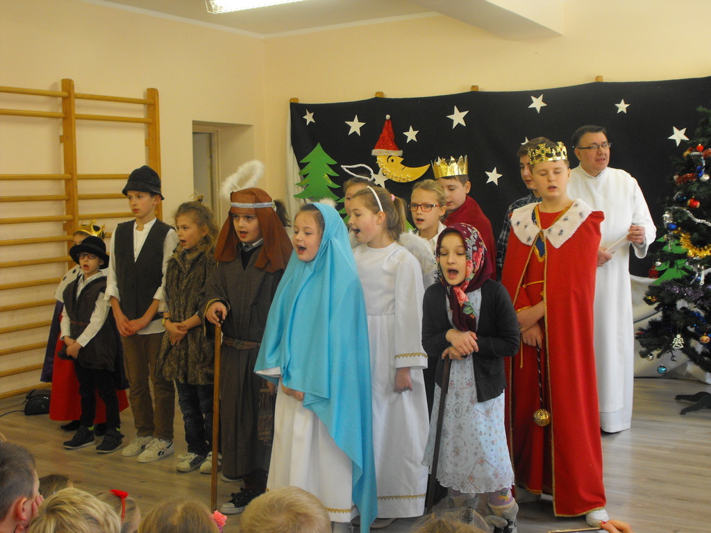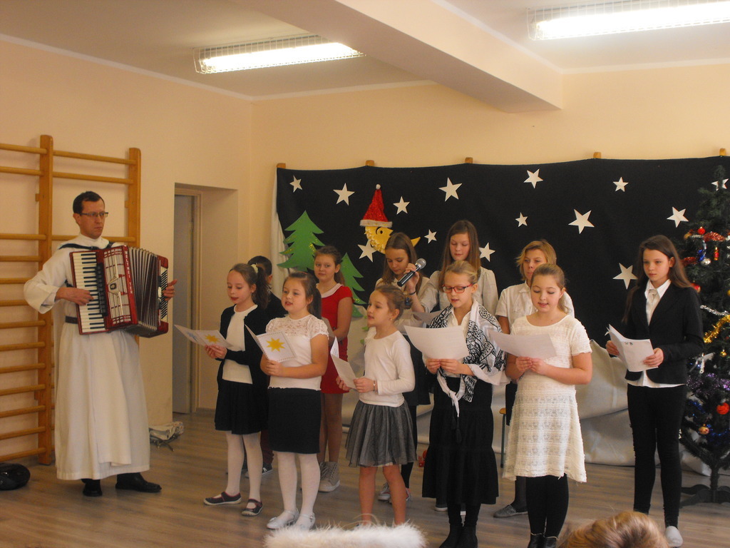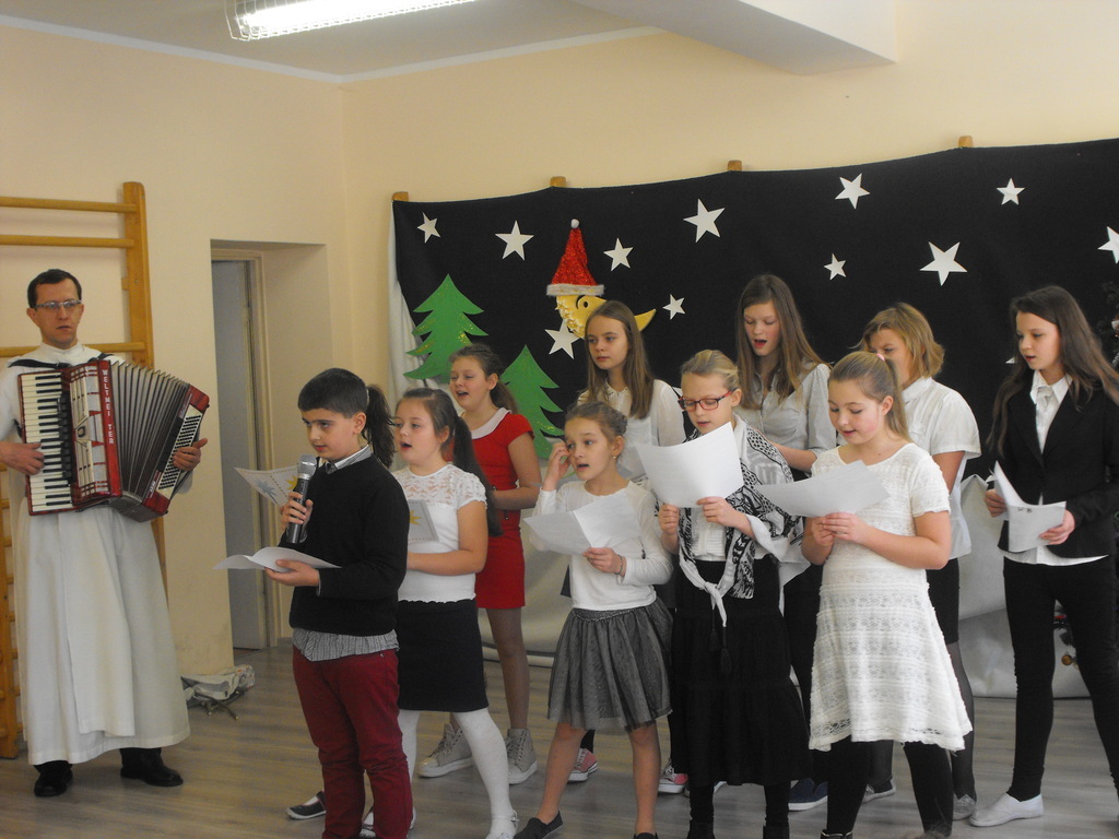 22.12.16 - uczniowie naszej szkoły pod opieką Ojca Józefa Kucińskiego przedstawili Jasełka. W spotkaniu udział wzięli Rodzice, Dziadkowie młodych artystów, Grono Pedagogiczne, pracownicy szkoły. Po występie miało miejsce wspólne kolędowanie, któremu przewodniczył diakon Andrzej Kostrowicki.