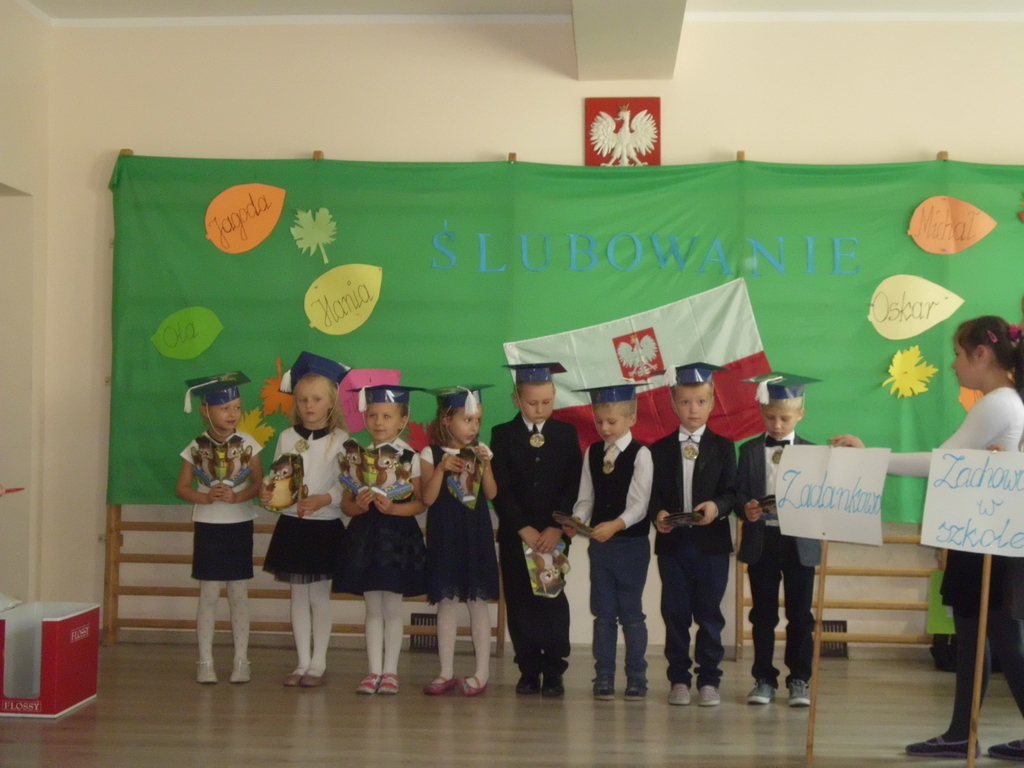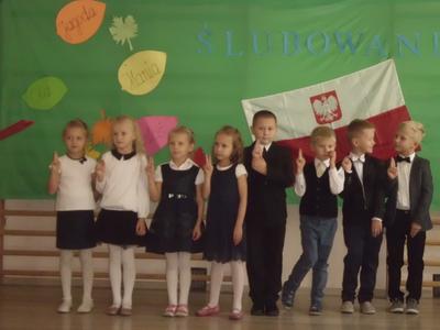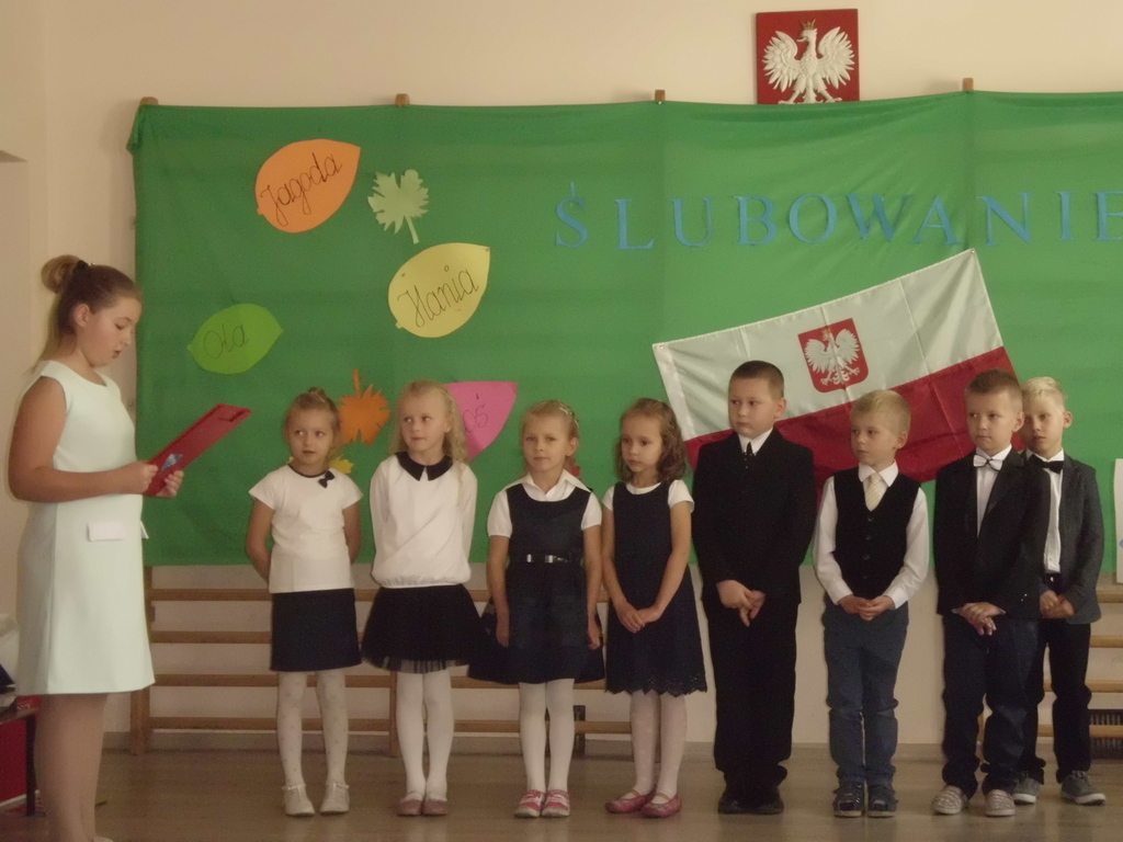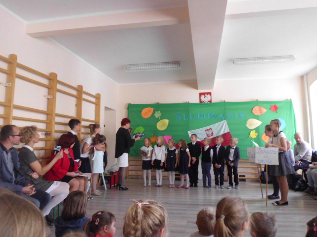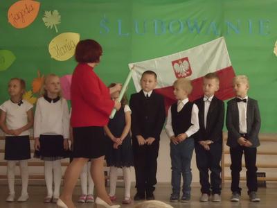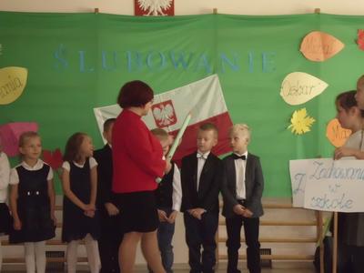 W czwartek 19 października odbyło się Ślubowanie uczniów klasy pierwszej. W uroczystości udział wzięła cała społeczność szkolna, rodzice, zaproszeni goście. Pierwszoklasiści złożyli uroczystą przysięgę, zostali pasowani przez p. Dyrektor na uczniów. Po części oficjalnej dzieci udały się na słodki poczęstunek przygotowany przez rodziców. Pierwszakom życzymy wielu sukcesów w nauce.
