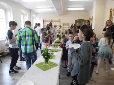 Śniadanie wielkanocne Jak co roku, uczniowie naszej szkoły wraz z wychowawcami aktywnie włączyli się w przygotowanie potraw na wspólne, wielkanocne śniadanie. Przed rozpoczęciem posiłku pani dyrektor złożyła wszystkim zebranym świąteczne życzenia. Zdjęcia Zobacz również Zabawa karnawałowa 2018 "Żywa lekcja historii" Pierwszy Dzień Wiosny Śniadanie wielkanocne Święto Konstytucji 3 Maja Wycieczka szkolna - KRAKÓW, ZAKOPANE i okolice 28 marca 2018 Aktualności Wydrukuj Udostępnij Wyświetlono: 600