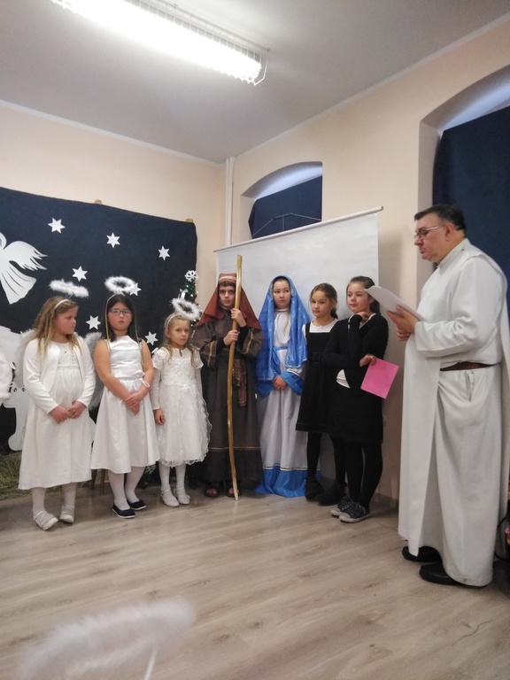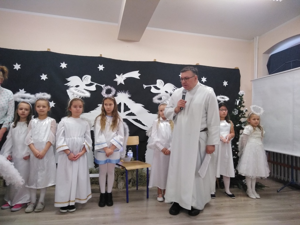 21 grudnia w naszej szkole odbyły się Jasełka dzieci młodszych pod opieką p. Anny Górnej i Marii Pocian oraz dzieci starszych pod opieką O. Józefa Kucińskiego. Po pięknych występach miało miejsce wspólne kolędowanie oraz poczęstunek dla dzieci przygotowany przez Radę Rodziców.