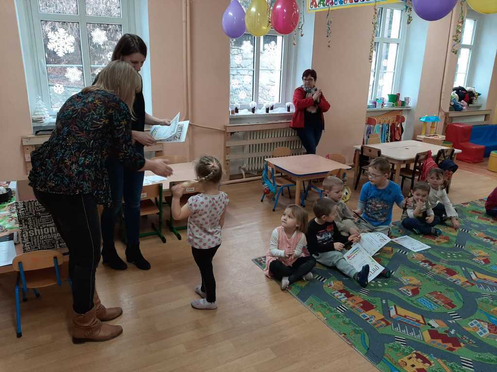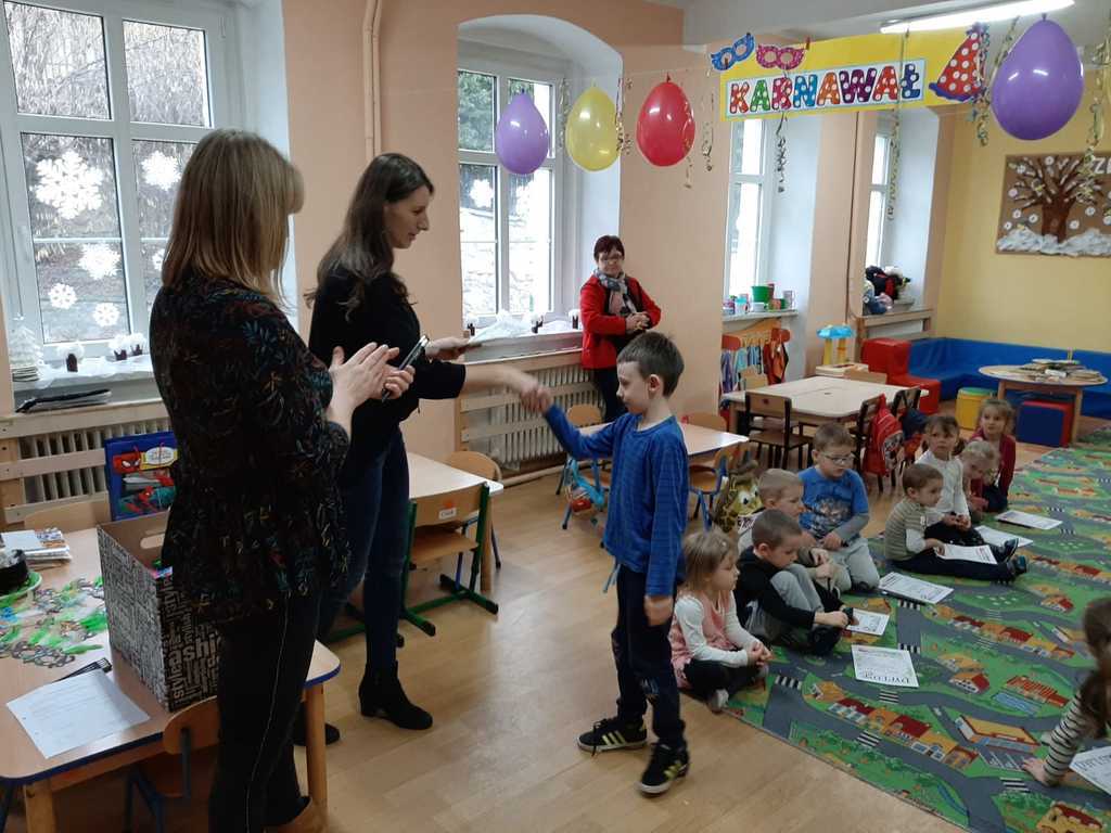 7 lutego nastąpiło rozstrzygnięcie konkursu plastycznego, pt. "Maska karnawałowa" zorganizowanego przez panią Anię Górną. Konkurs skierowany był do dzieci i rodziców z Małego Przedszkola i klasy "0“. Pani dyrektor Urszula Suchań uroczystoście ogłosiła wyniki konkursu, wręczyła nagrody i dyplomy laureatom: I miejsce-Gabryś Janik, II miejsce-Jaś Bielski, III miejsce Oskarek Margol, jak równiez pozostałym uczestnikom konkursu. Wszystkim naszym niesamowicie zdolnym dzieciaczkom dziękujemy i gratulujemy - jesteśmy z Was dumni!!! Podziękowania kierujemy również do naszych wspaniałych Rodziców za ogromne zaanagażowanie i współpracę.