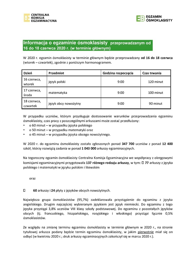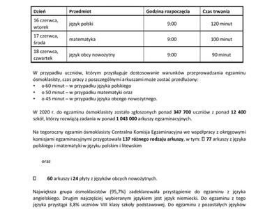 Egzamin ósmoklasisty 2020 Zdjęcia Zobacz również Dzień Babci i Dziadka Konkurs na najpiękniejszą "Maskę karnawałową" Rekrutacja 2020/2021, wnioski i klauzule Egzamin ósmoklasisty 2020 Zakończenie roku szkolnego 2019/2020 Listy dzieci przyjętych do klasy pierwszej, Oddziału... 10 czerwca 2020 Aktualności Wydrukuj Udostępnij Wyświetlono: 292