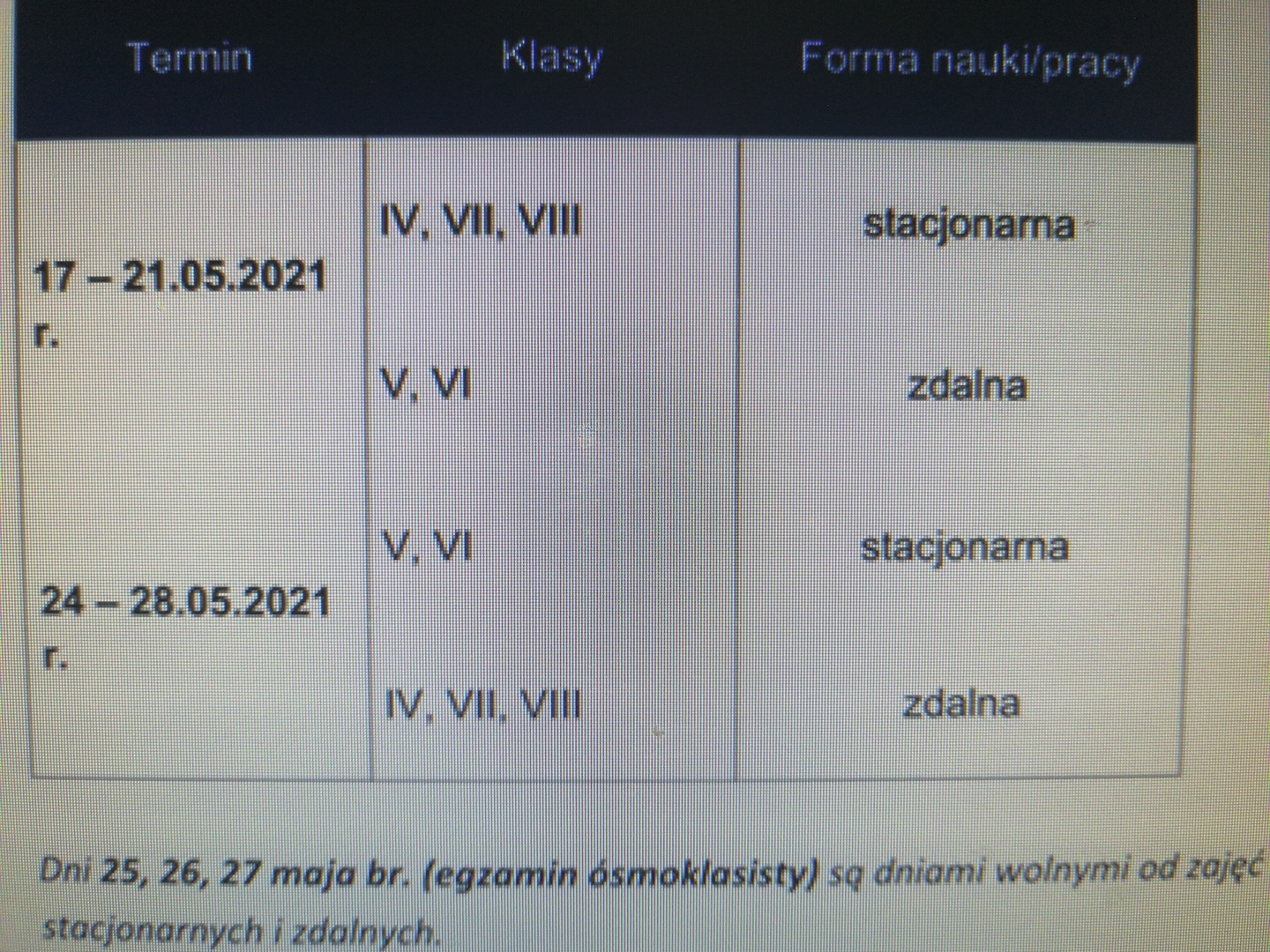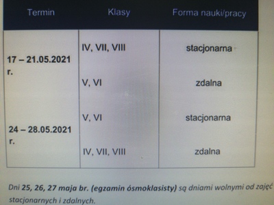 Harmonogram powrotu do szkoły od 17.05.2021 Zdjęcia Zobacz również Rekrutacja 2021 /2022 Wielkanoc 2021 Listy dzieci przyjętych do placówki na rok 2021/2022... Harmonogram powrotu do szkoły od 17.05.2021 Harmonogram jazdy busa szkolnego Wyniki konkursu na najładniejszą kartkę wielkanocną... 11 maja 2021 Aktualności Wydrukuj Udostępnij Wyświetlono: 241