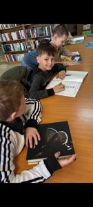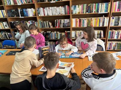 Klasa pierwsza odwiedziła Bibliotekę Publiczną w Starej Łomnicy, gdzie młodzi czytelnicy z wielką przyjemnością oglądali, czytali i słuchali co mają "do powiedzenia" różnorodne albumy, poradniki, książeczki.