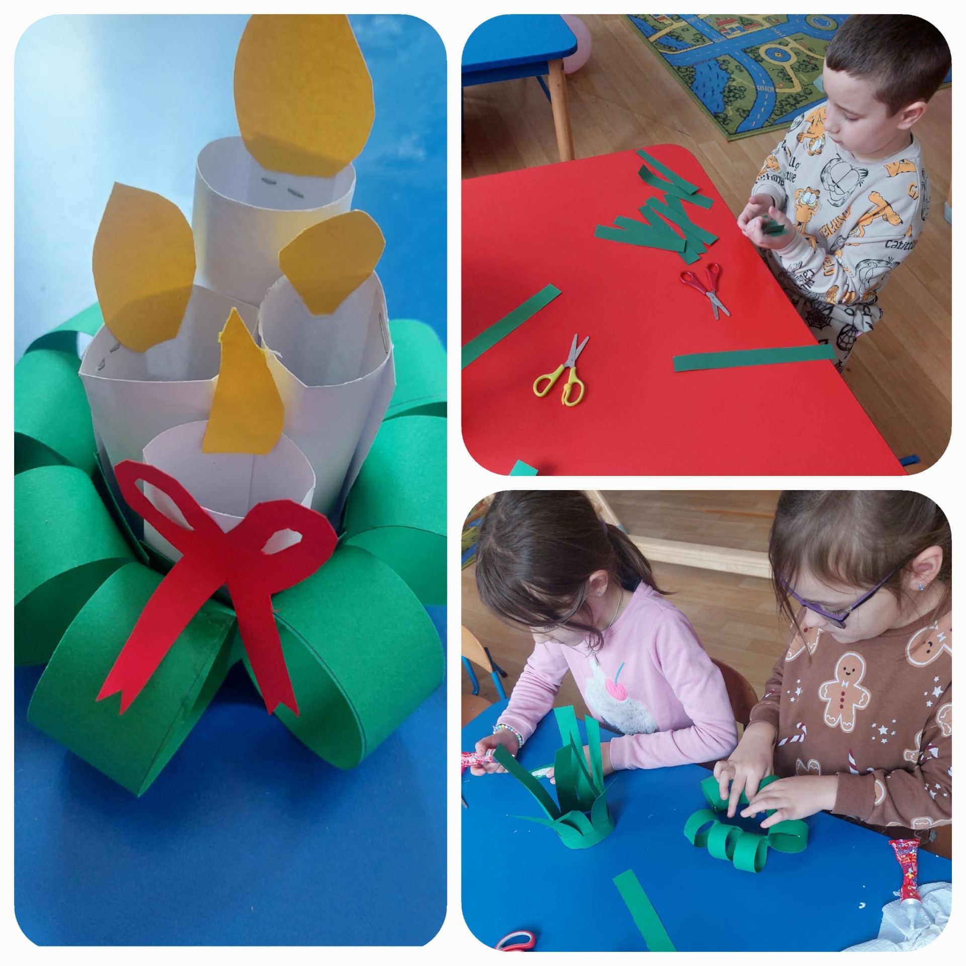 Świąteczny nastrój: Nie zabrakło też akcentów zimowych – papierowe świeczniki stworzyły przytulną atmosferę. 🕯️🎄