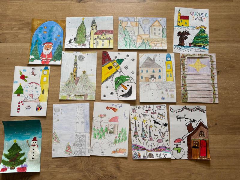 Zobaczcie, jakie cudeńka stworzyli nasi zdolni uczniowie! 🤩 Te przepiękne kartki to ich prace zgłoszone do konkursu NAJPIĘKNIEJSZA KARTKA BOŻONARODZENIOWA organizowanego przez Gminę Bystrzyca Kłodzka!